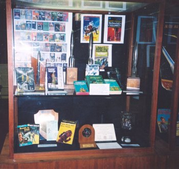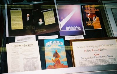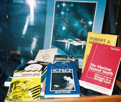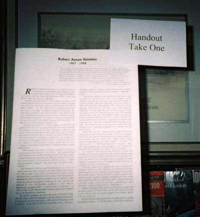 I prepared a four-page short biography and list of Heinlein's works as a handout for the display -- something people could take away and read later.