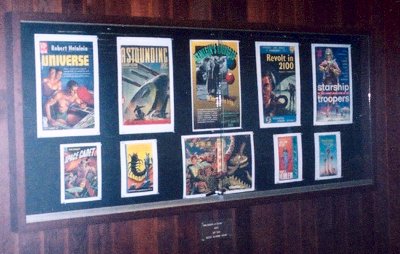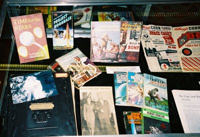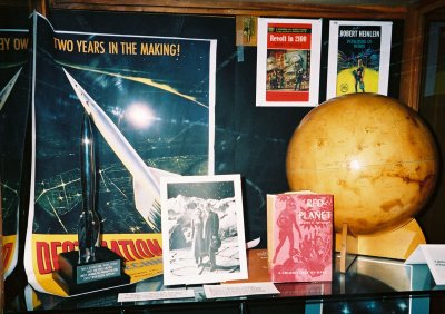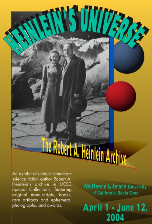 McHenry Library at U.C. Santa Cruz regularly runs displays on its ground floor entranceway, usually of interesting material held in the University Library’s collections. After Easter 2004, the Friends of the Library asked Special Collections to put together an exhibit of materials from the Heinlein Archive.
