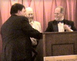 I then introduced my sister, Jane Silver, who was lovely in her formal, and who lost the bet with my wife on who would be my keeper this World Con; and then on to introduce Gay and Joe Haldeman, who like Larry and Pink Niven, need no further introduction to SF readers. Joe is both an Award judge and our Society’s newest director.