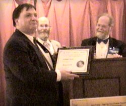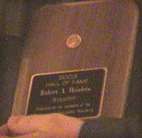 which Fred Moulton, one of our first Heinlein Society members, on behalf of the Libertarian Futurist Society, awarded Robert Heinlein its 2003 Hall of Fame award for the story “Requiem.” I was honored to accept that award on Robert’s behalf. It is a beautiful plaque which I’ll forward