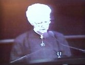 We then had the audio visual presentation. We again showed Ginny’s copy of the broadcast of the interview by Walter Cronkite of Arthur C. Clarke and Robert Heinlein on the occasion of man’s first small steps in July 1969, the moon landing, to the delight of the crowd.