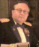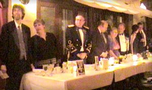 Next I introduced Larry and Marilyn Niven. Larry is one of the Award judges, and so well known as an author to require no further introduction. Then came Art Dula, the Heinlein Prize Trustee and successor literary executor. Art’s beautiful wife, Tamea, could not arrive in time for dinner, so we had seated Lt. Col. Sam Kramer, resplendent in his mess blues, whose devoted efforts at selling all the dinner tickets at our table merited his inclusion at the head table, next to Art.