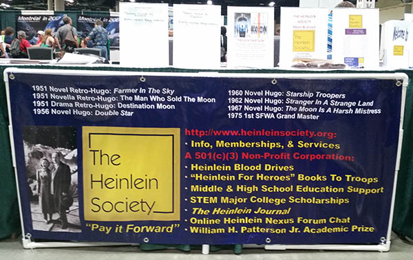 We spoke briefly with the MidAmeriCon II committee about next year’s Worldcon, but they were so burnt out (weren’t we all) we plan follow-up discussions in email. There will be quite a bit of Heinlein-related programming and exhibits, with the latter including (we were told) newly digitized video from the 1976 MidAmeriCon (where Heinlein was Guest of Honor for the third and final time), some display items from the 2007 Heinlein Centennial, Heinlein artifacts and realia (typewriters, jewelry, art work), and, of course, the Heinlein exhibit for the Hall of Famous Missourians. The Heinlein Society is also making preliminary inquiries to see of some type of quasi-tour/quasi-“relaxacon” to Jefferson City is feasible after MidAmeriCon II. For further information about the 2016 Worldcon, see www.midamericon2.org . Note attending membership rates will rise after September, 2015.