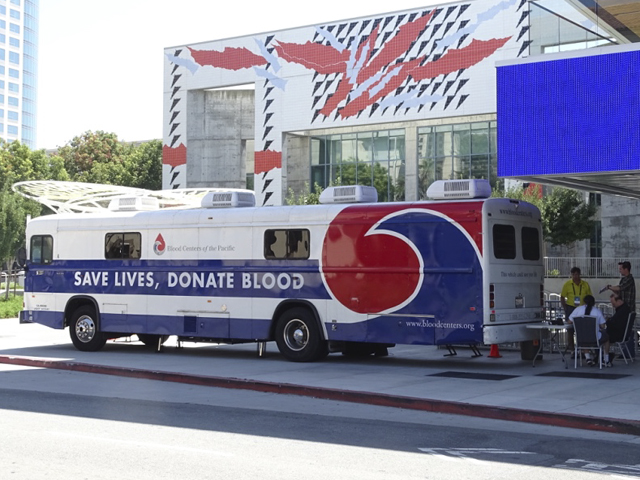 The Blood Drive registration table set up on Thursday to allow donation appointments Friday, Saturday, and Sunday. Unique bureaucratic requirements necessitated using the Bloodmobile. Carlin Black and Mike Sheffield estimated that having to use the bloodmobile, instead of the space we’d planned on, unfortunately resulted in half of the donations we could have collected. Still, 98 units isn’t too shabby!