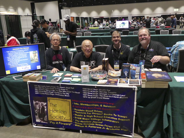 The 76th World Science Fiction Convention (“Worldcon”) was held in San Jose, California, 16-20 August 2018. The Heinlein Society was well-represented by Board members (Herb Gilliland, Joe Haldeman, Keith Kato, Geo Rule, John Seltzer, John Tilden, Betsey Wilcox), Committee chairs and contributors (Carlin Black, Marie Guthrie, Will Hamilton, Mike Sheffield, Sharon Sheffield, Ken Walters), and other Society members (Ty Arnold, Brad Lyau, G. David Nordley, Juliet Vogel) all lending their time to help. The Heinlein contingent helped run or participate in: