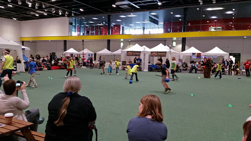 Fans playing Quidditch (no flying) in the recreation area of the Fan Village