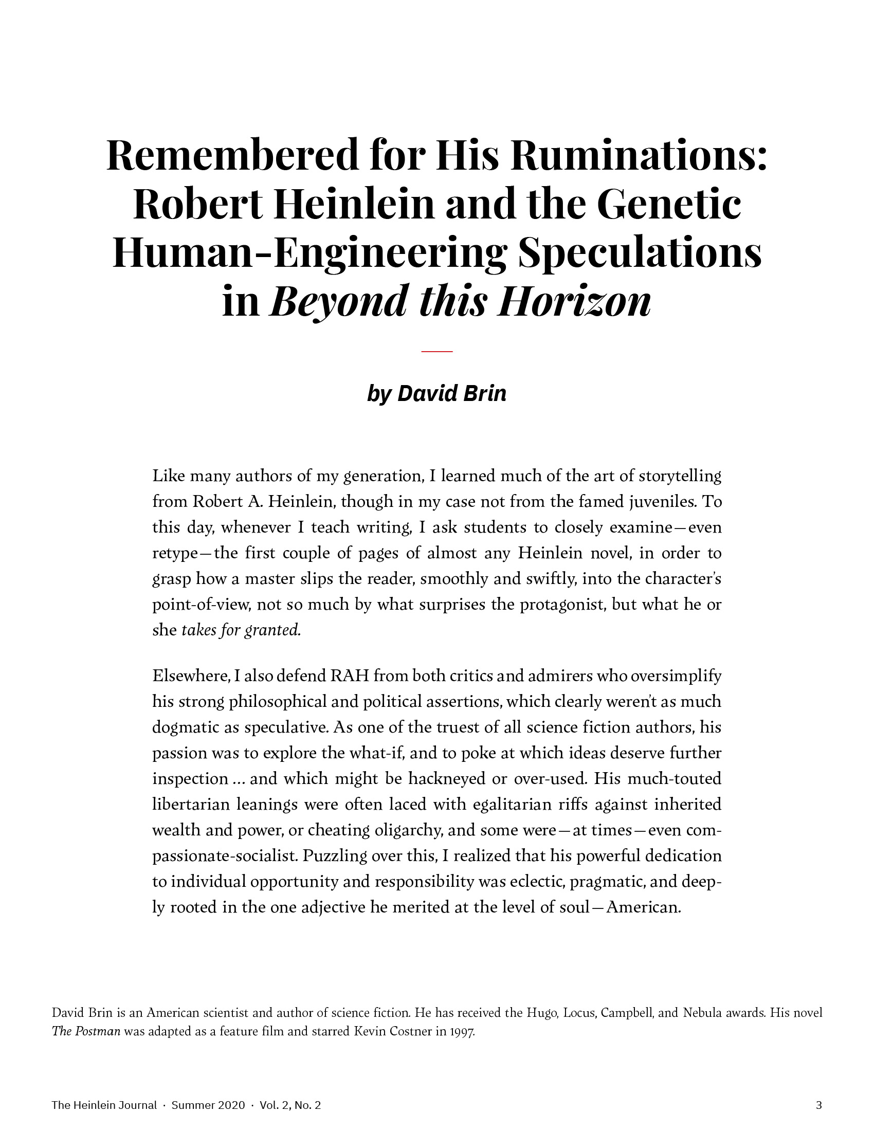 “Remembered for His Ruminations: Robert Heinlein and the Genetic Human-Engineering Speculations in Beyond This Horizon”