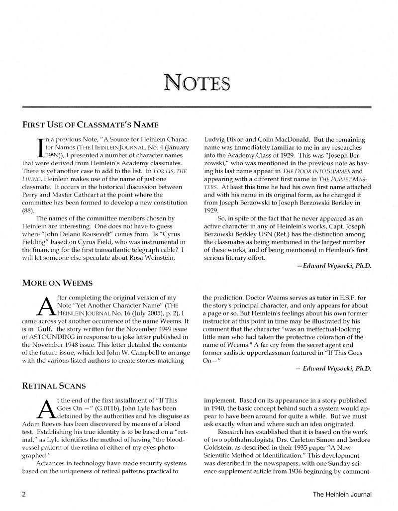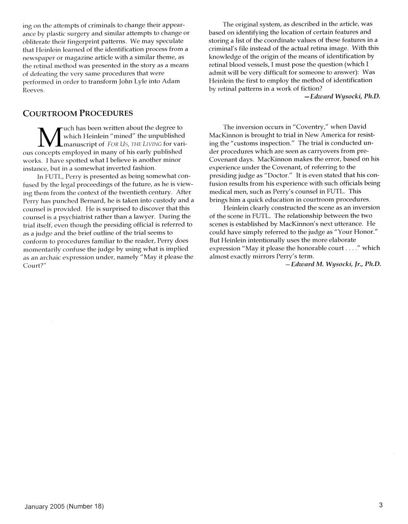 Edward Wysocki, Ph.D. “First Use of Classmate’s Name,” “More on Weems,” “Retinal Scans,” “Courtroom Procedures.”