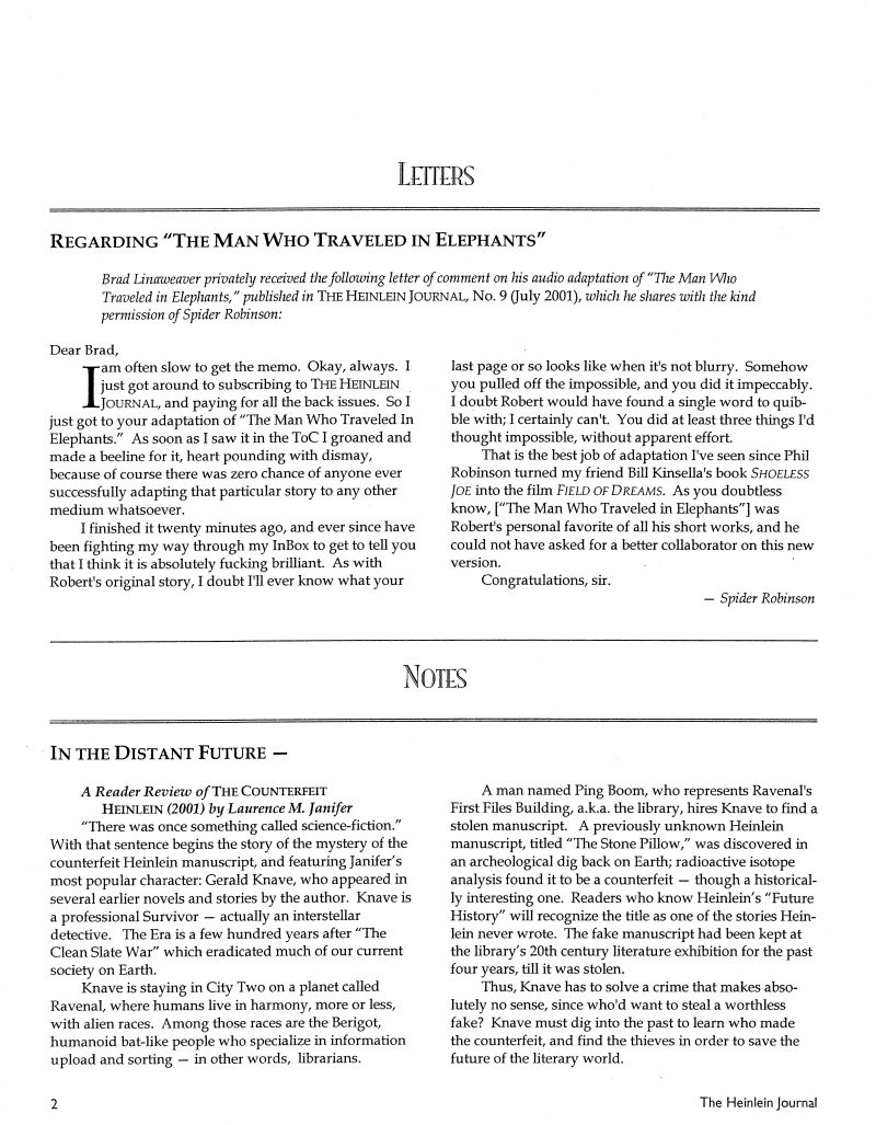 Letters Spider Robinson to Brad Linaweaver: “Regarding ‘The Man Who Traveled in Elephants’”