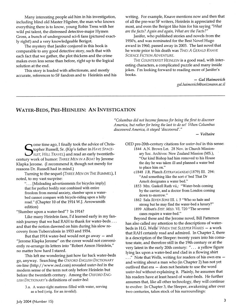 Gal Haimovich: “In the Distant Future — A Reader’s Review of The Counterfeit Heinlein (2001) by Laurence M. Janifer”