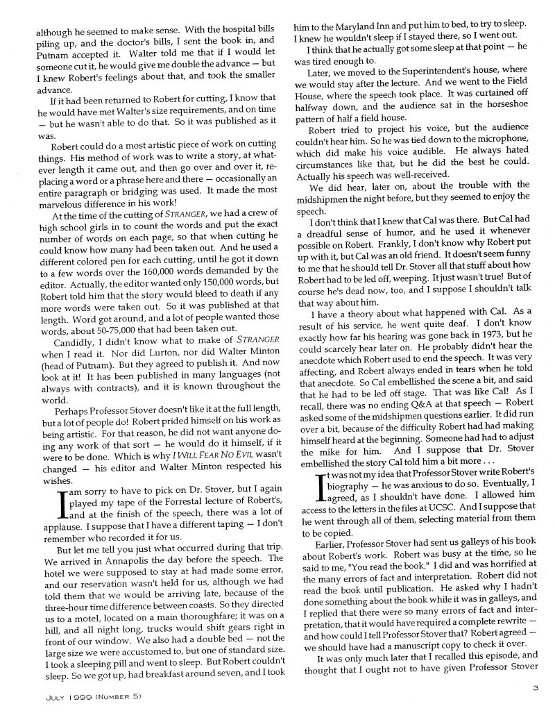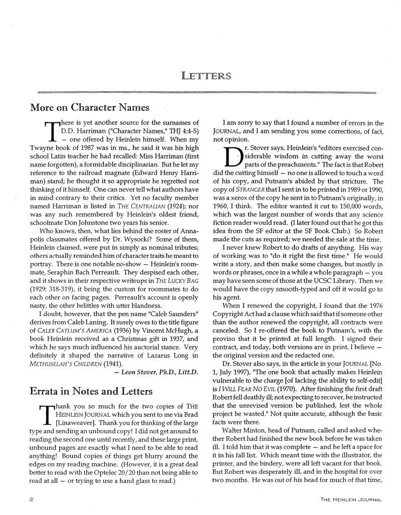 Letters: Leon Stover, Virginia Heinlein