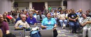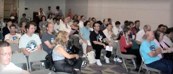 At 2 PM we held our “Heinlein: Stranger than Stranger, Four Decades After the Hugo” panel, once again, to a packed room. Well over 120 people were present. With Dr. James moderating, Brad Lyau, Geo Rule, Deb Houdek Rule, Fran Van Cleave, and Joe Major all presented a variety of views. Several Heinlein Society panelists were interviewed about it by a television crew following this panel.
