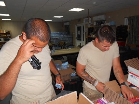 This is a military package receiving center in a temporary building overseas. Note the books on the table. These could be H4H books. This is where your book donations are going. This is how we are helping our deployed troops by sending them science fiction books.